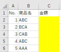 例えば、このような表があって、マクロによって商品に応じた金額をC列に入力したいとします。